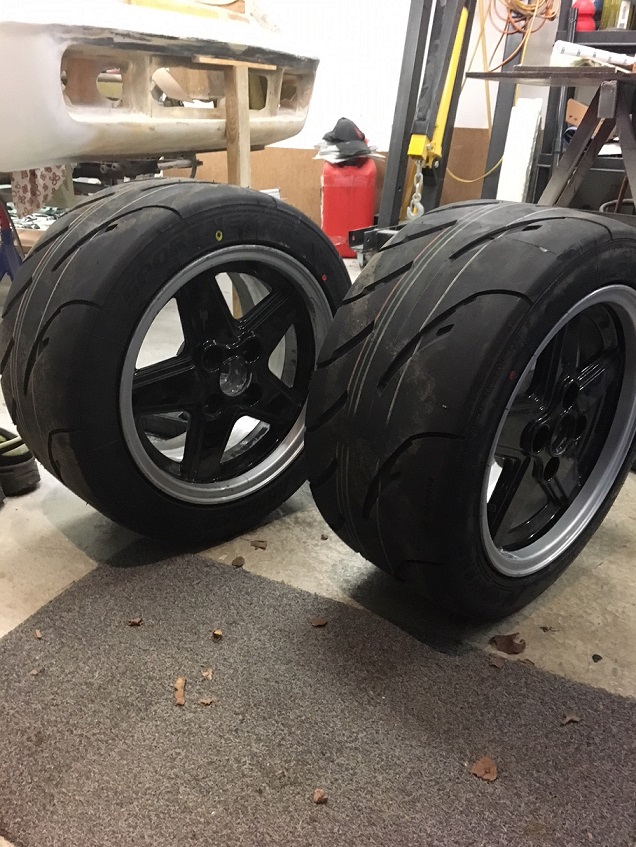 Tanken är att bredda fälgarna (inåt) till 9" och sätta på däck i formatet 245/40 15 istället för som idag 195/50 15, hoppas det då ser lite "fetare" ut :-D