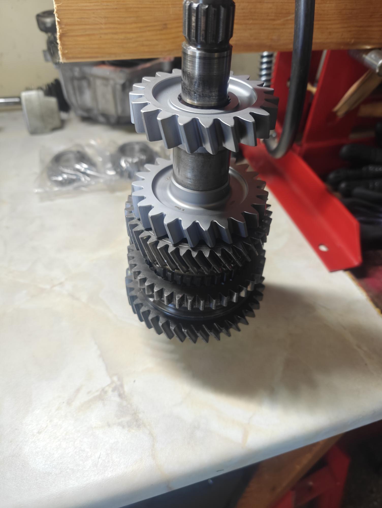 Jag beslöt mig för att gå på spåret med förstärkta kugghjul på trean och fyrans växel. Jag rev ner lådan och beställde delarna. Det visade sig att dom inte passade. Kulmåttet på invändig splines var för stort, gick att för hand montera på axlarnas splines. Dom skal pressas på. Efter samtal med Jubu Performance, som jag köpt kugghjulen av, framkom att Toyota har tre varianter av axlar i dessa lådor, tre olika storlekar på splinesen. Jag hade självklart den minsta och då fungerade inte denna lösning. Suck, där gick luften ur lite och jag stängde garagedörren för 2025.
