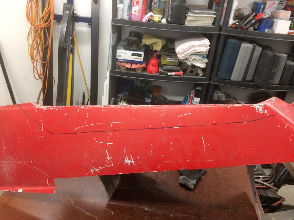 Har sågat ut överdelen till vänster bakskärm, nu får denna kompletteras (saknas en del vid anslutningen till bakrutan) och passas in.