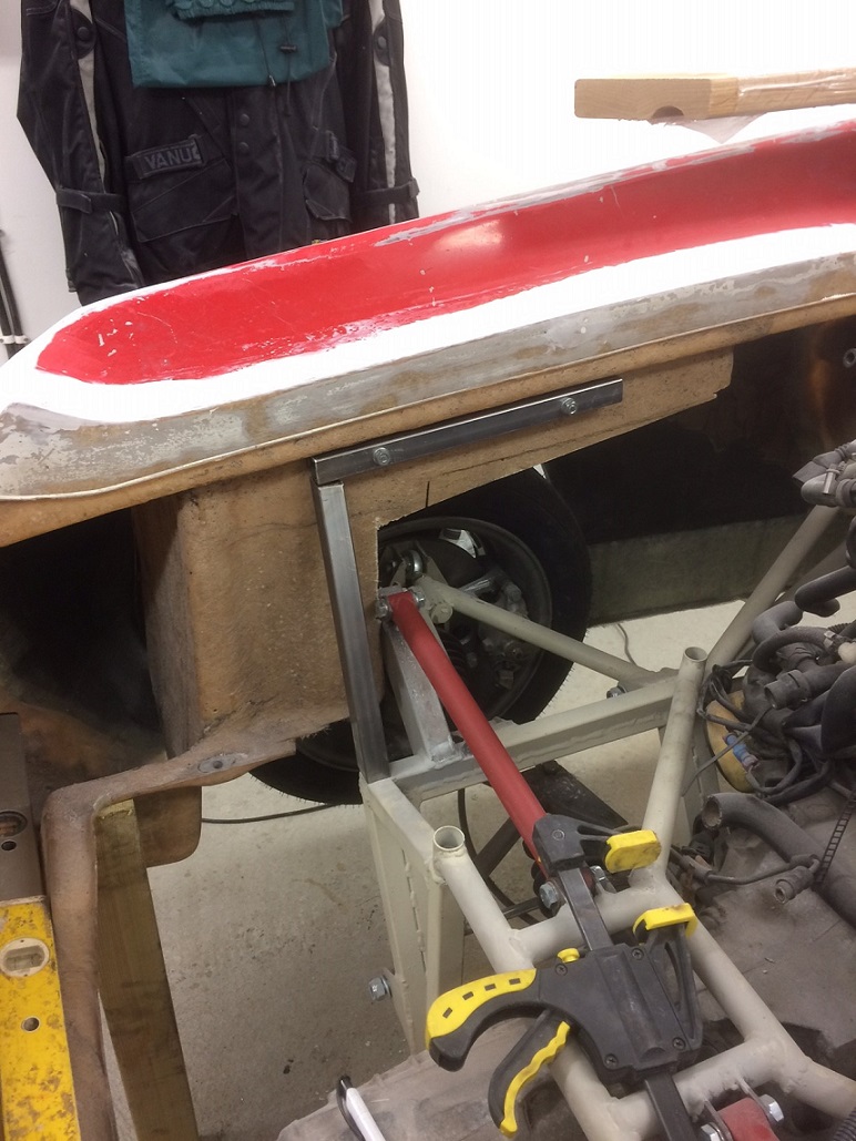 Har fixat till vänster bakre fäste mellan kaross och chassiet