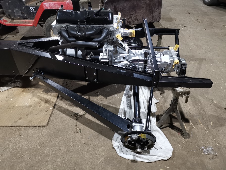 Chassi är klart med upphängning, bromsar, hjul och allt det där. Motor och låda också.