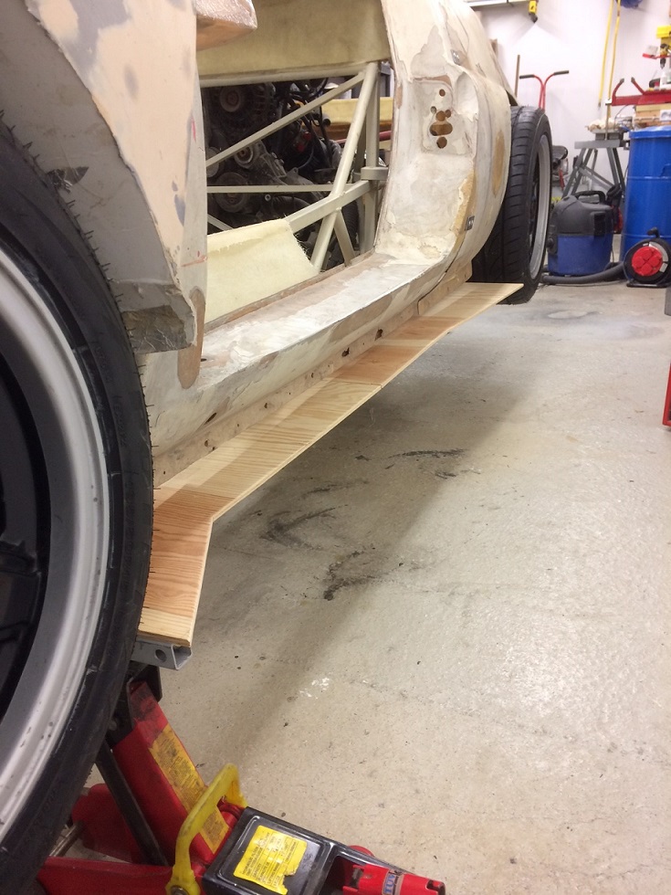 Karossen är idag i tre delar, har lagt på dessa på karossen och skall nu "plasta" ihop dessa sen blir det till att börja med att skapa bilens former som en plugg för avgjutning. Får breddas en del där bak....