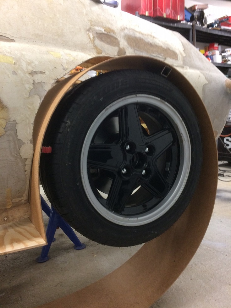 Hmm, tycke och smak. Personligen skulle jag provat med låga skärmbreddare, typ Opel Manta 400. Borde gå att få till något som hänger ihop.