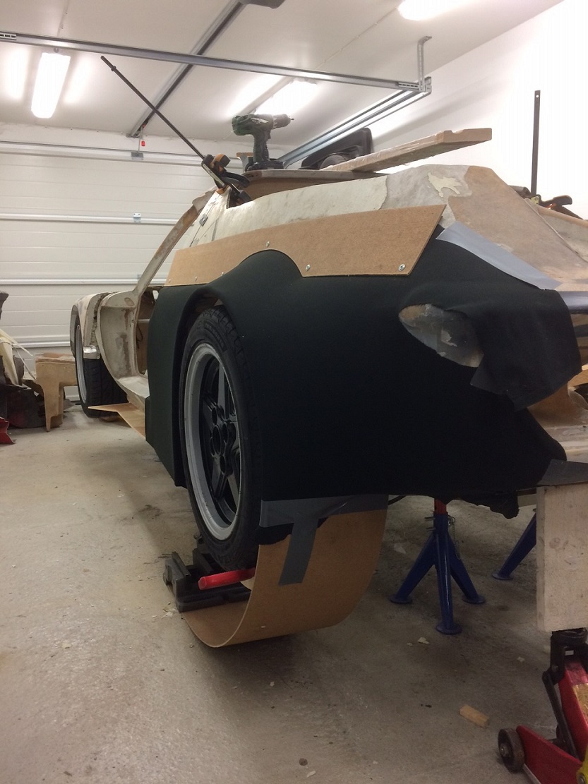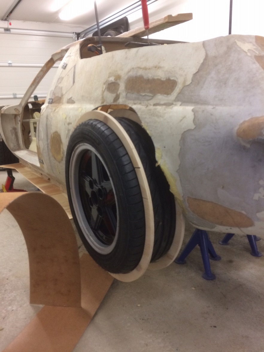 Alla har vi olika smak, men om det var mitt bygge så skulle jag vilja ha en breddning i bak som börjar vid dörren och slutar så långt bak som möjligt. Med en så nära orginalliknande karossida. . Gör du en breddning typ som den första 911 turbo hade, så får du precis som på den, använda någon slags "Stenskottsskydd" på utbyggnaden.