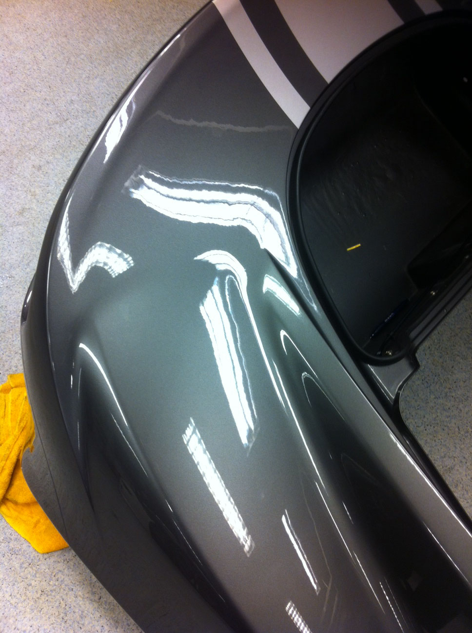 Medans min kompis har gjort elen har jag passat på att rengöra allting under frontclammen, bytt varenda skruv i hela fronten till helt nya, lagt ner ca 8 timmar på polering av bakklammen samt 6 lager Swisswax (100% carnuba), även lackat "grillen" bak, bytt varenda skruv, demonterat bakluckan och börjat avmonteringen av de plastflänsarna för att sätta dig helt nya.