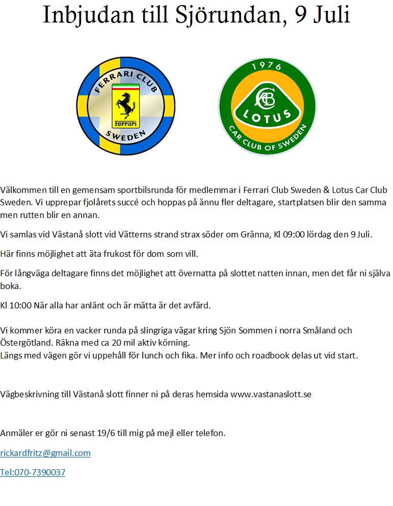 Dags att lägga ut en inbjudan till årets version av Sjörundan, varmt välkomna att anmäla er.