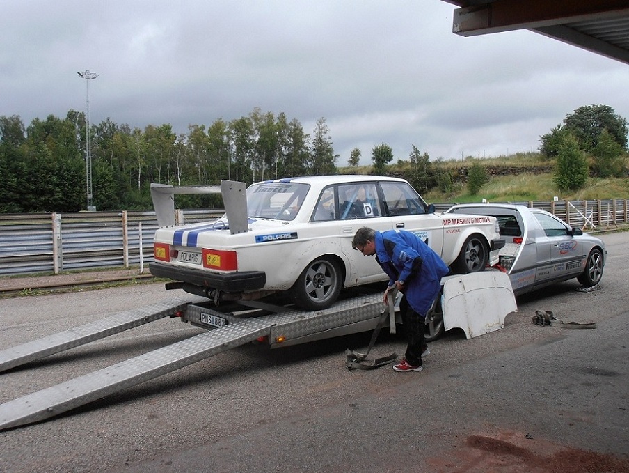 Ikväll har vi lastat upp gamla Bettan på vår S60 Racetransporter och står klara för att kl 05.00 på söndag sätta kurs på Ring Knutstorp för finaltävlingen. Det ser ut att bli ett "wetrace" så vi har satt på nya Toyo 888, som brukar fungera bra i blött på vår bil. Det går bra att komma och heja! Racet går mellan kl 10.00 - 16.00.