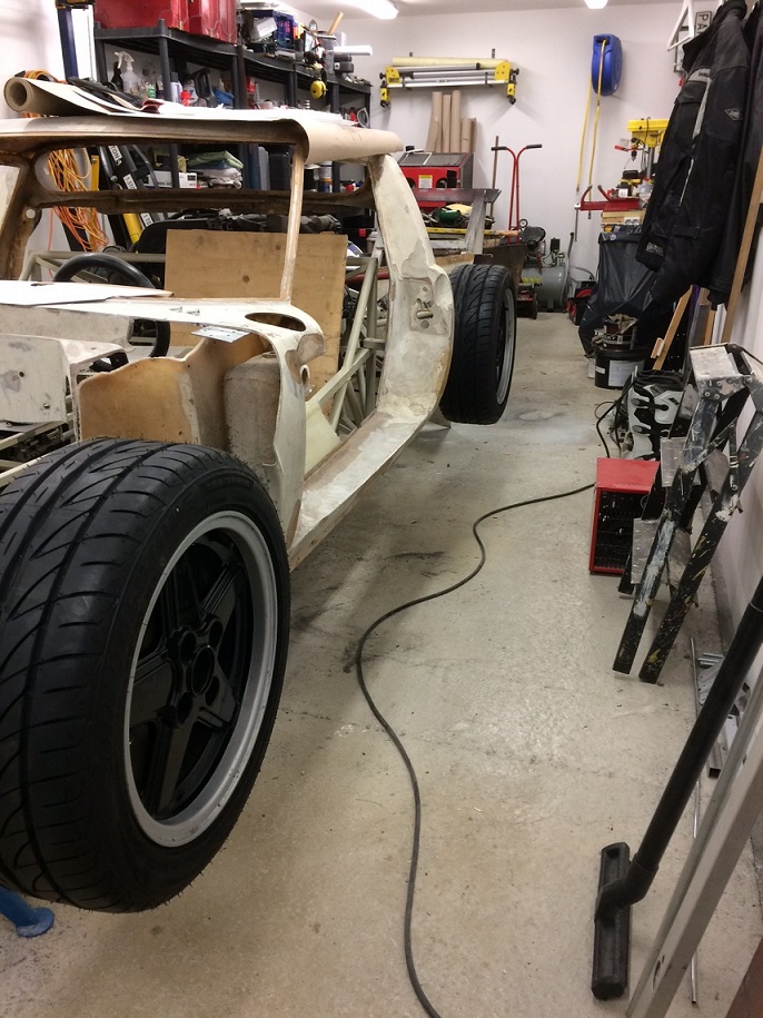 . Först och främst skall jag "bygga" med glasfiber så att karossen kan vila på/mot chassit