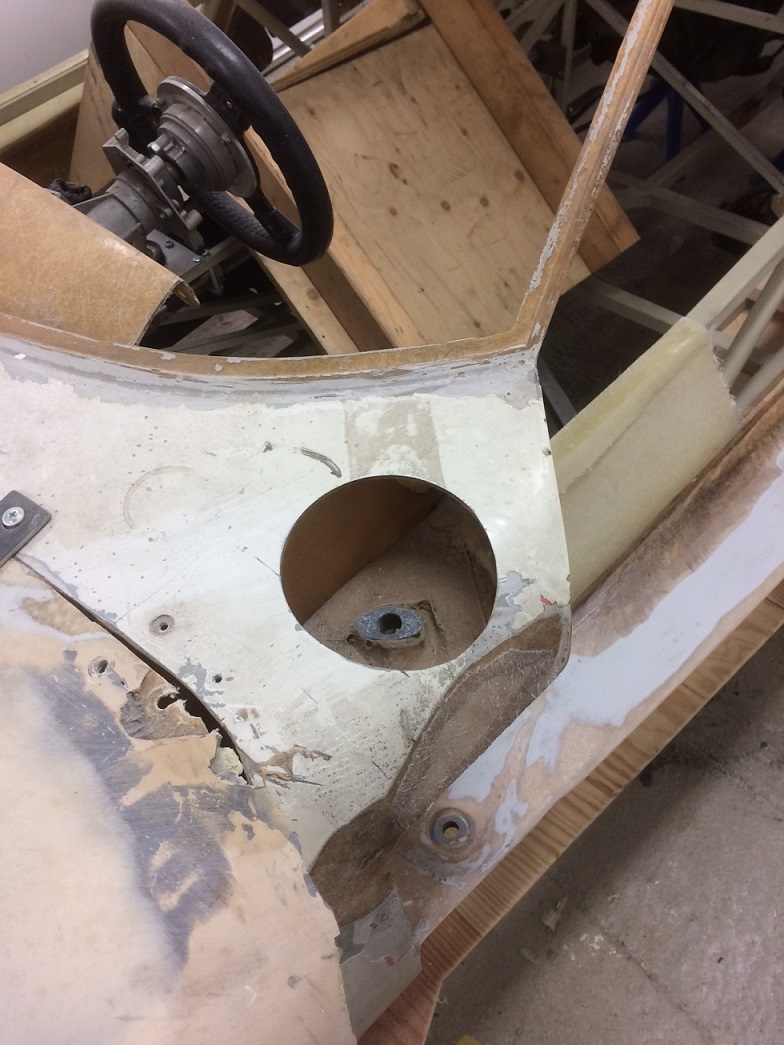Har nu sågat ut skärmen och skall nu förstärka lite här bakom innan jag plastar dit skärmen