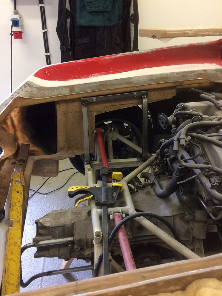 Karossen är kortad 95mm mellan vindrutan och fronten så det blir till att korta ner huven motsvarande
