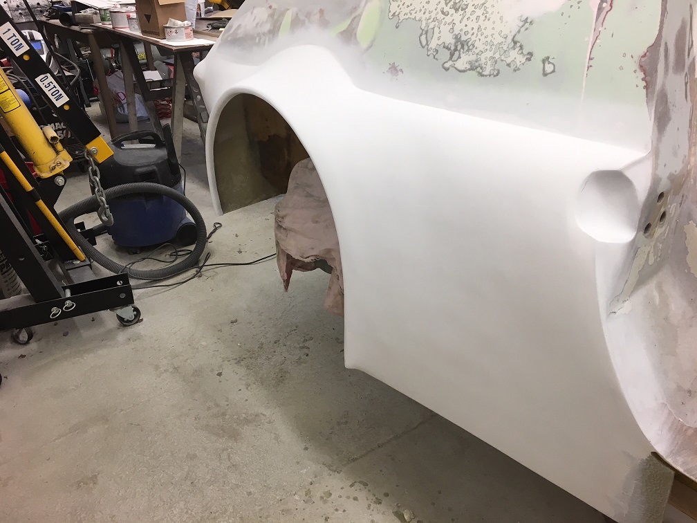 Har spacklat så att bakskärmen ser hyffsad ut.