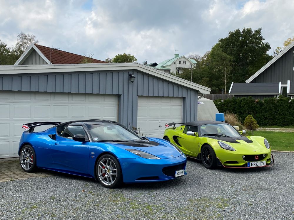 Olle Odsell, klubbordf med numera bara två Elise; en -00 (Serie 1) och en -01 (dotter), Evora S -12, Volvo C70 -06 till hustrun, Volvo V60 till vardags, Volvo C30 för dottern och en Bürstner husbil.