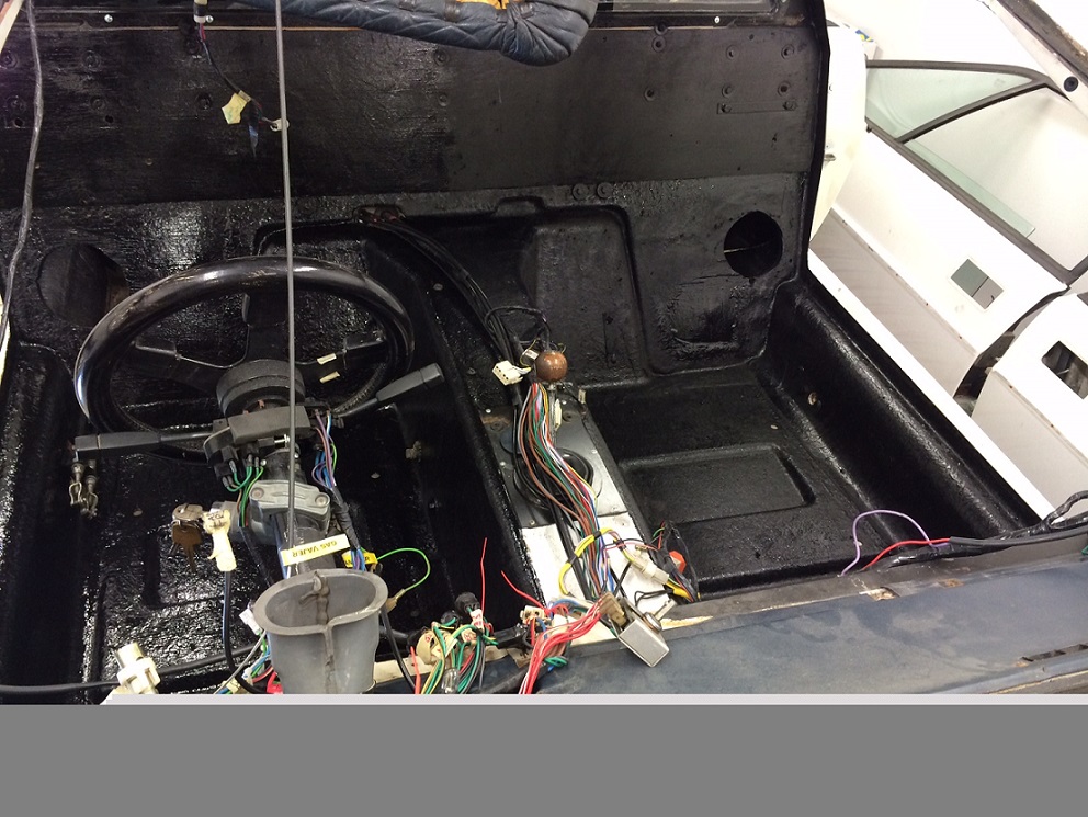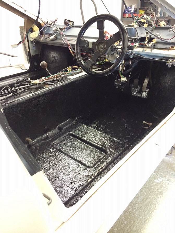 Vänstra sittbrunnen rengjord, målad och klar för ljudisolering
