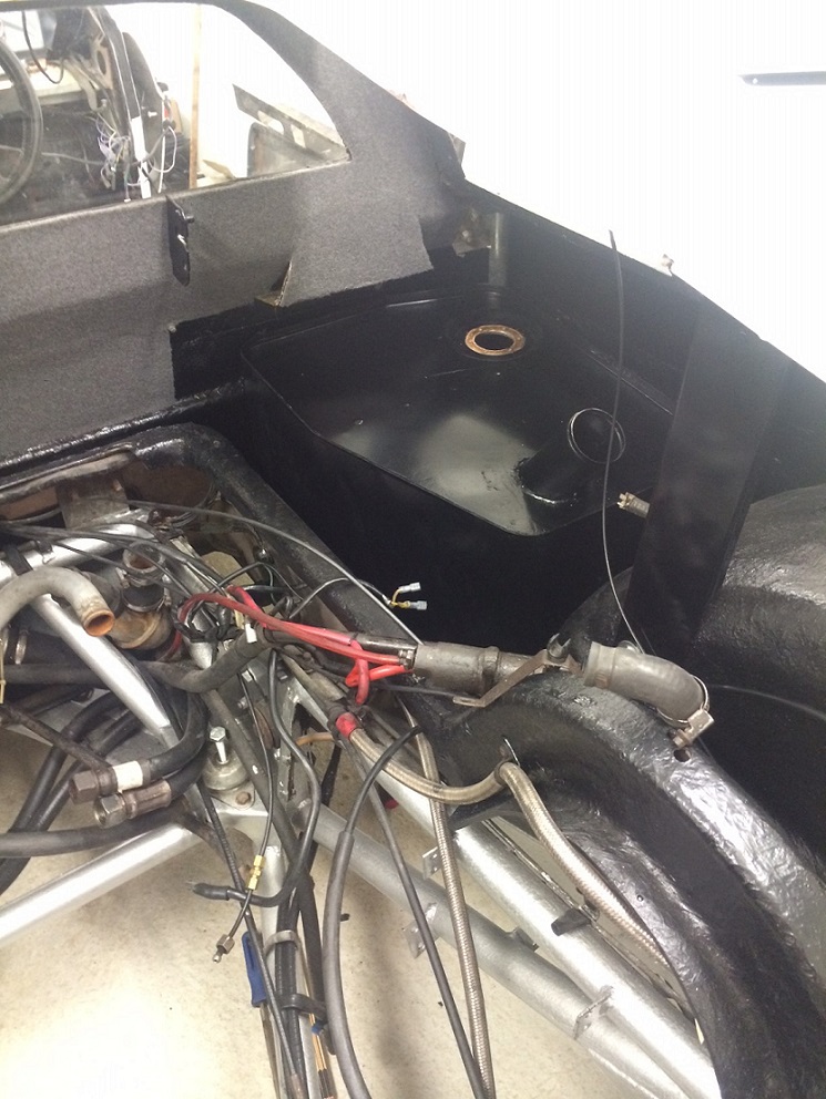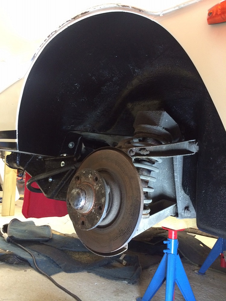 Hann idag även med att montera skivan över bensintanken (höger sida), riva av bromsoket (vänster fram), skrapa och måla detta hjulhus.