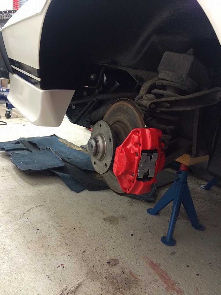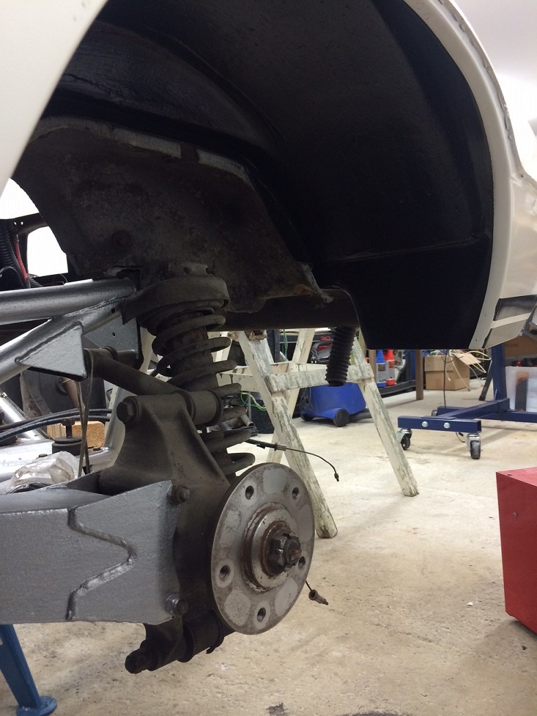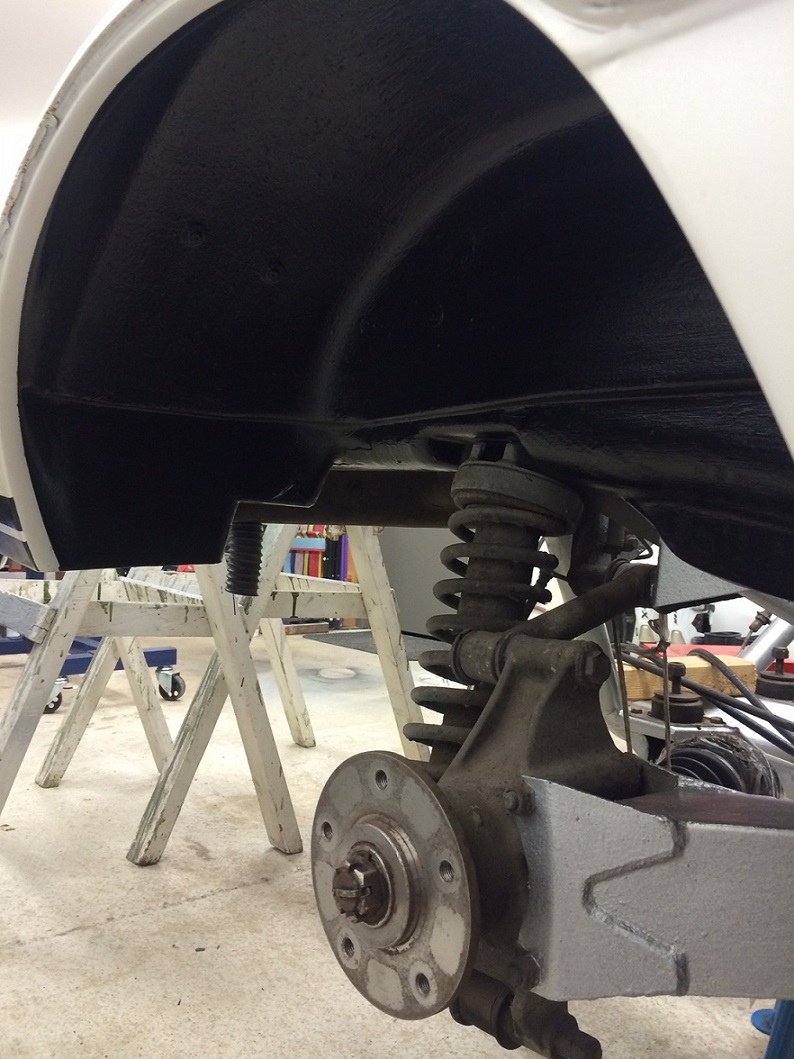 Hjulhusen bak målande, väntar nu på fälgarna som är på blästring.