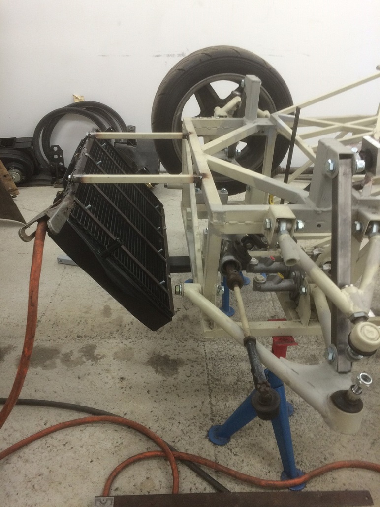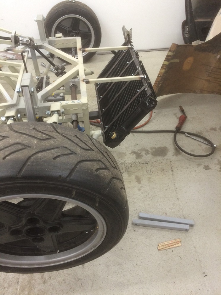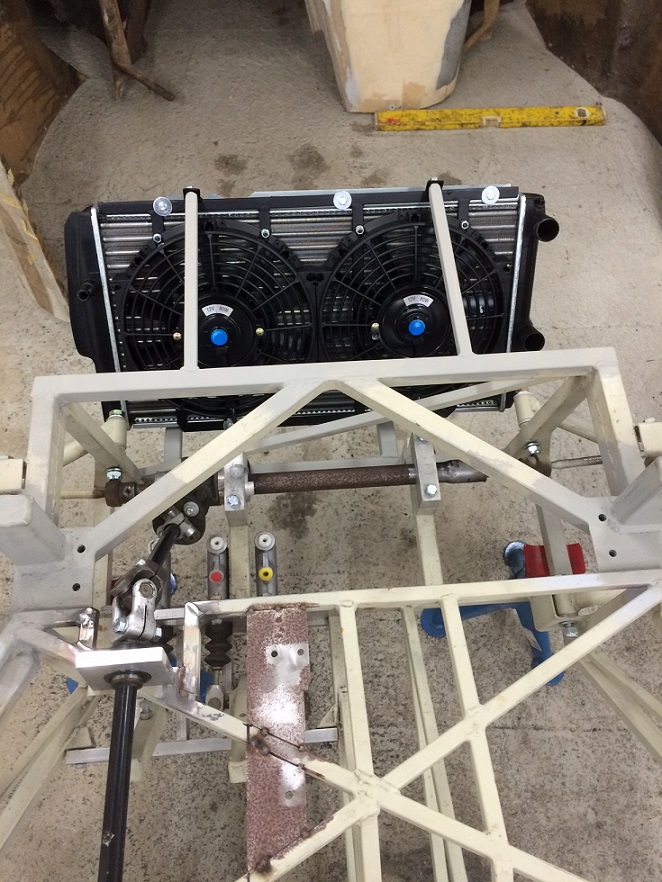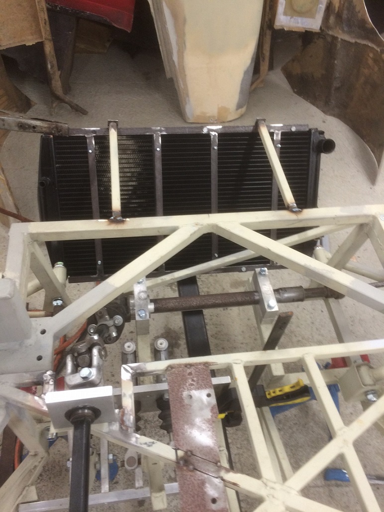 Då var fäste och kylarpaketet klart och monterat. Nästa uppgift blir att göra nya fäste till handbroms och dra vajrar till oken bak.