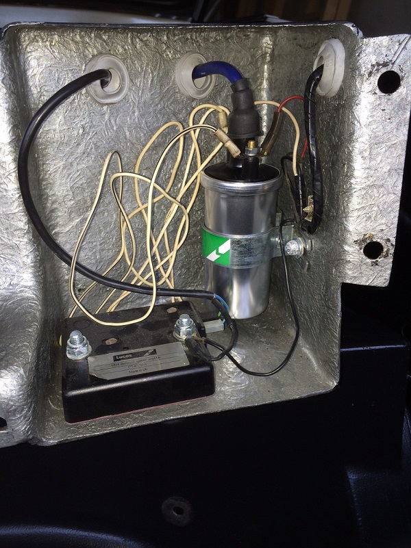 Har aldrig lyckats få bilen att gå helt hundra, har varit lättstartad, gått fint på tomgång och på fullgas men har misstänt vid lugnare gaspådrag. Har haft lite kontakt med Bertil Carlsson som tipsade mig att byta tändspolen. Beställde en ny från SJ och har ikväll monterat denna och vips går den rackans mycket bättre :-)