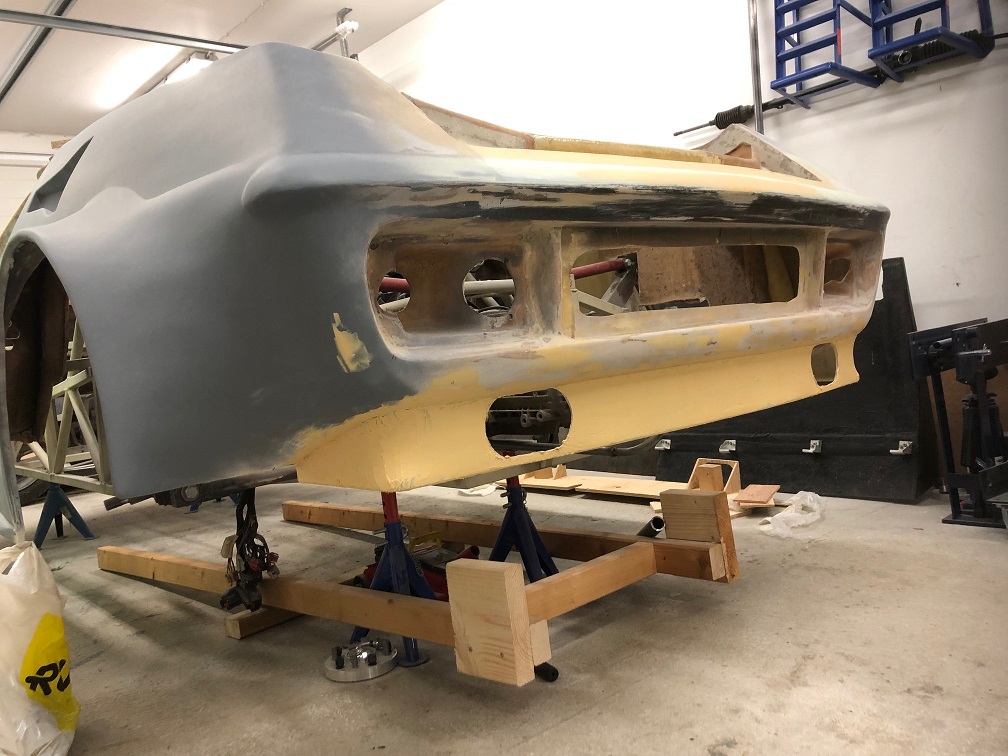Då har vi bakdelen på plats och spackel på, nu blir det till att slipa....................