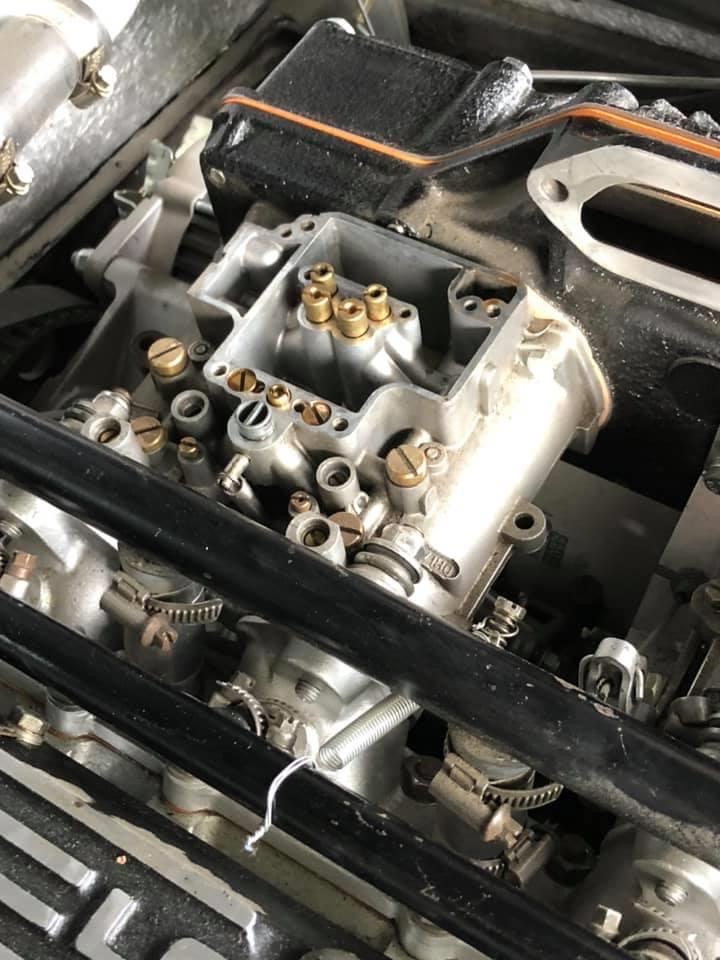 Har aldrig fått bilen att gå riktigt bra vid små gaspådrag på låga varv, har "hackat" lite. Bilen skall original ha lågfartsmunstycke i stl 40, bytte till 45 för några år sedan och det blev betydligt bättre. Toppen har någon "portat" vid något tillfälle så jag har misstänkt att den får för lite bensin vid låga varv. Bytte nu till munstycke stl 50, kollade tändningen 28 graders förtändning vid 3500 rpm, justerade förgasarna så den skall gå lite fett (12,5 / 0,85) och balanserade sedan dom, nu går den riktigt bra. Förra sommaren slutade värme- och bränslemätare att fungera så jag passade även på att byta Voltage Stabilazern så nu fungerar dessa igen. Två fel åtgärdat och efter provtur så var jag riktigt nöjd men....... nu läcker det lite kylarvätska istället, bilen är nog missnöjd med att den kommer ut försällan.................
