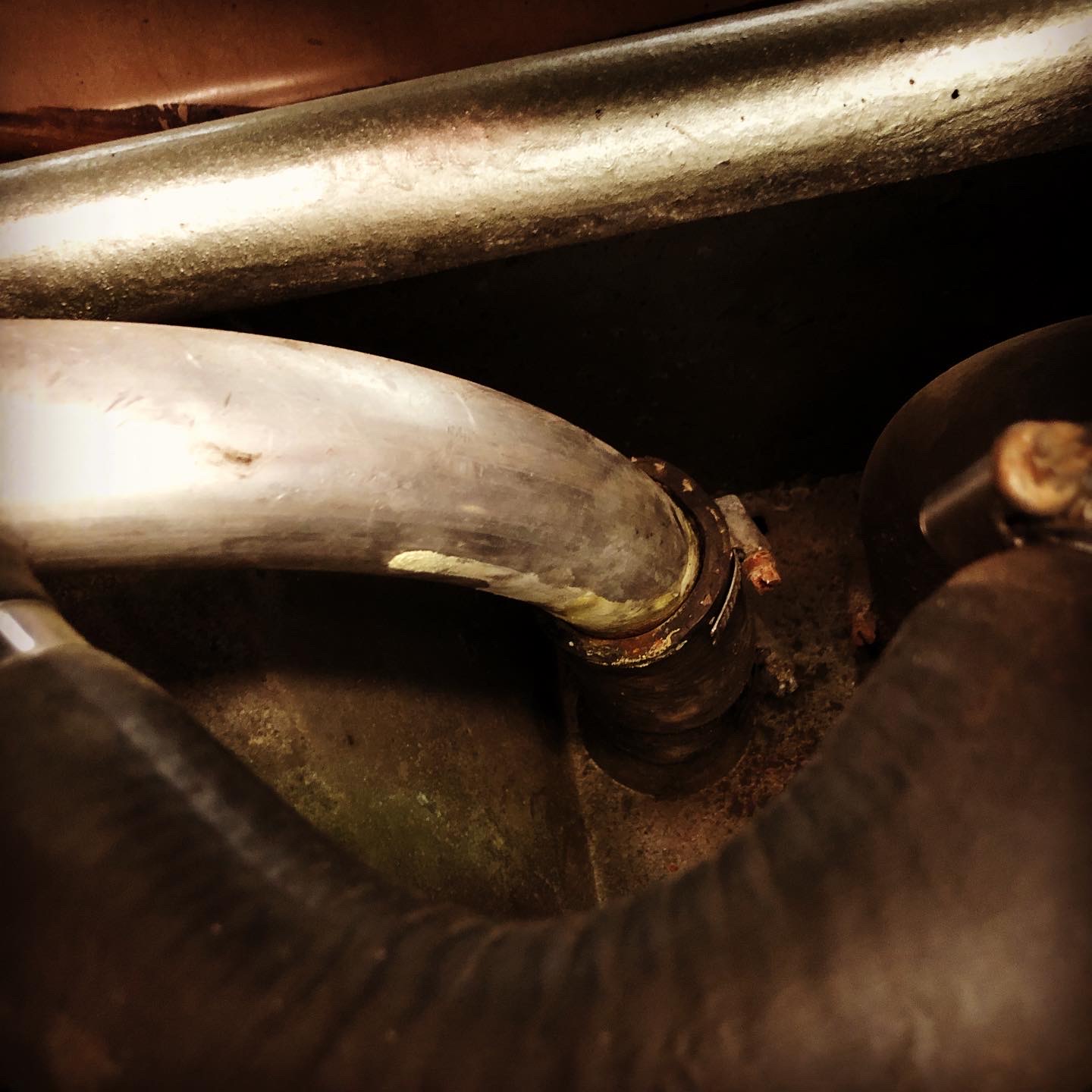 Upp med bilen på ramperna, hittade en slangklämma som behövde spännas. Gick över samtliga slangklämmor när jag ändå var där under..