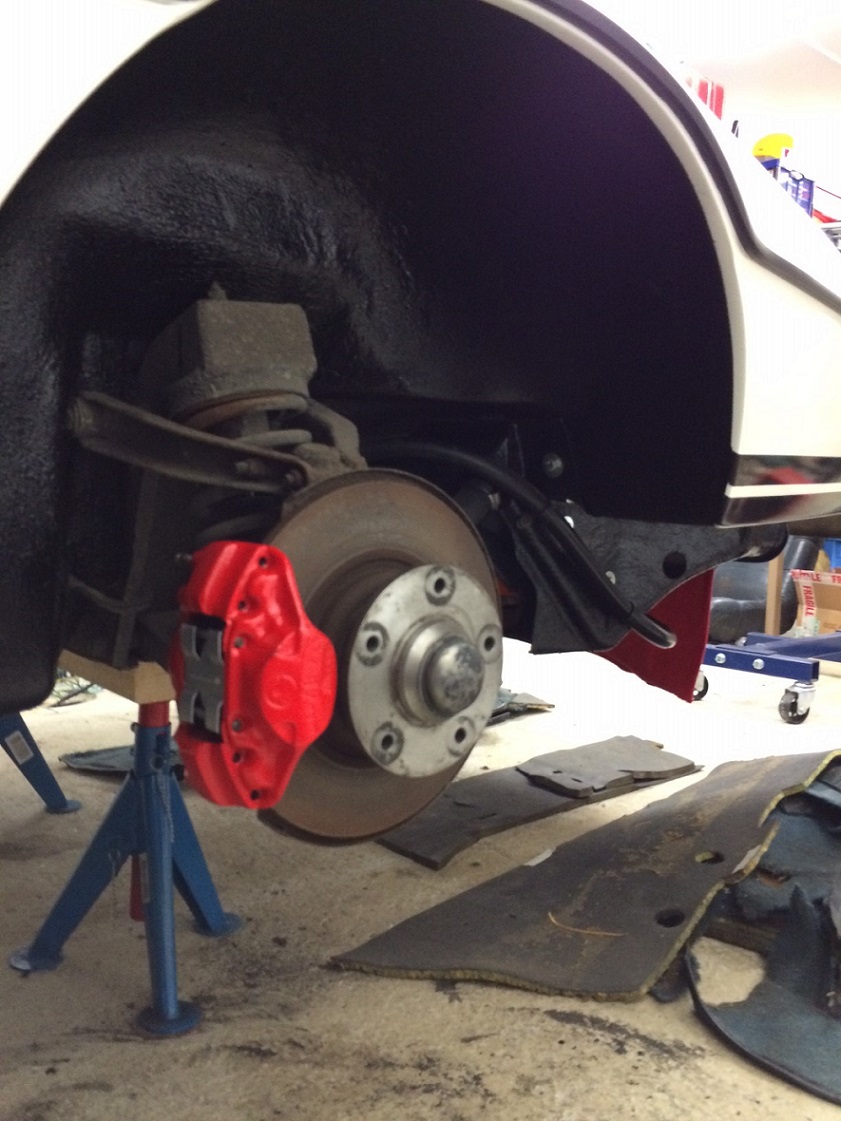 Bromsok höger fram renoverat och har fått nya bromsklossar
