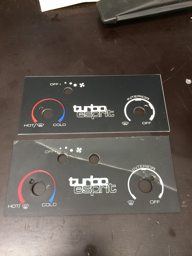 Fick tillverkat en ny panel till värmereglagen, den gamla hade "tillskotts hål" och var spräckt