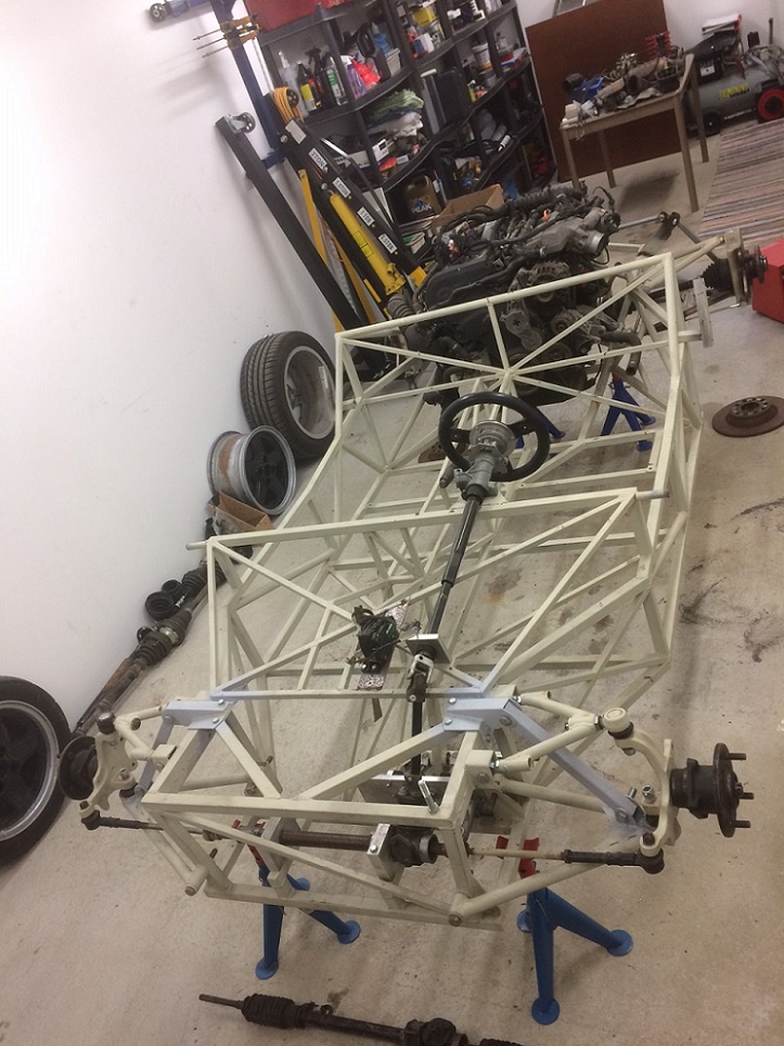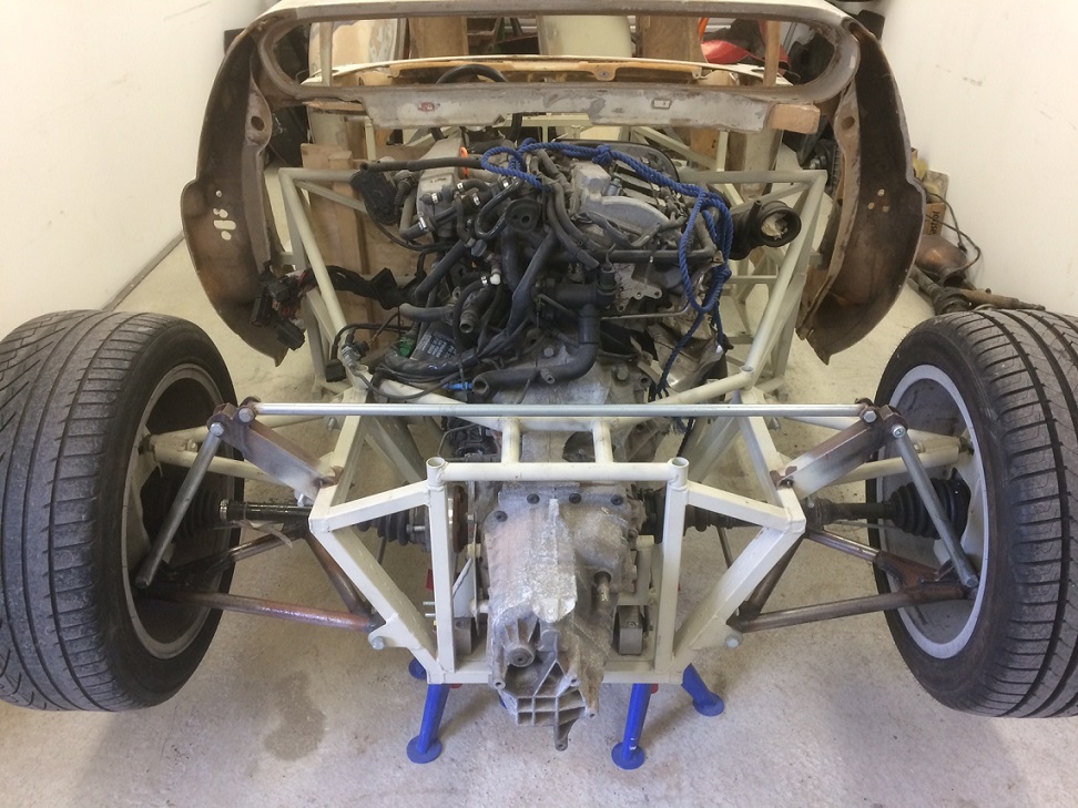 Receptet i stort är: En egenbyggd ram (inte byggd av mig), motor från en Passat (1,8t) och en kaross från en Lotus Europa.