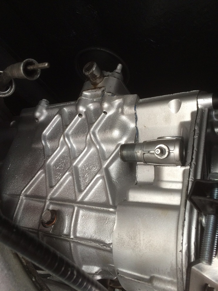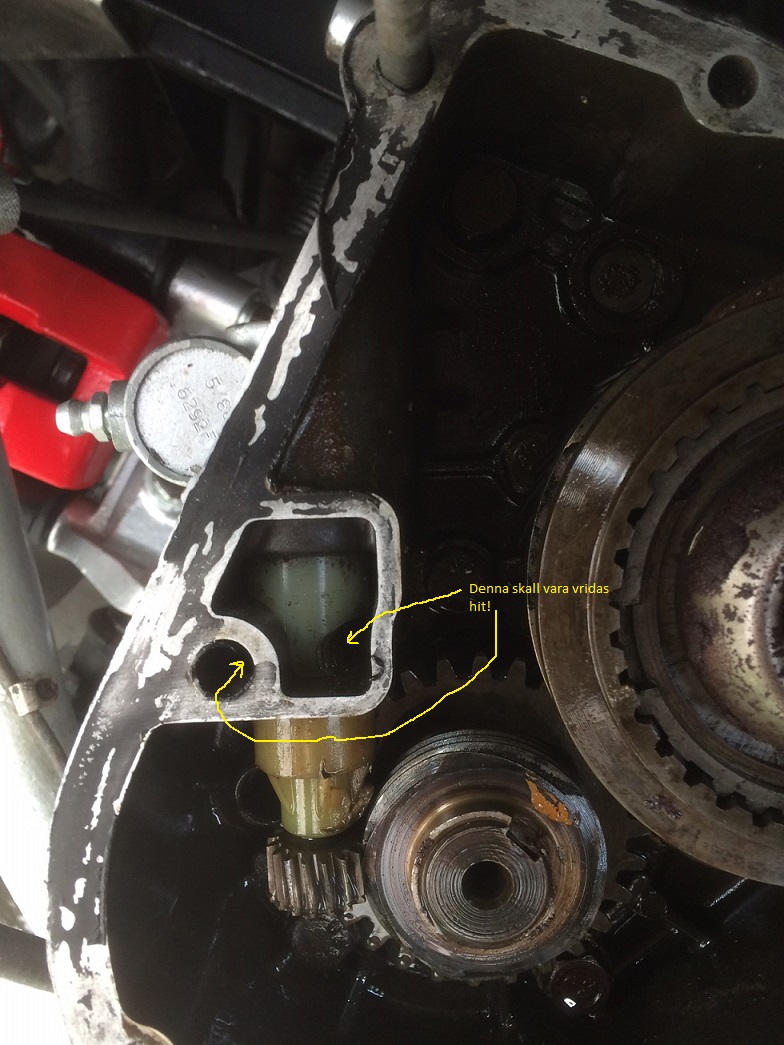 växellådan sitter fel så bulten 9x65mm som håller allt på plats kilar/klämmer på axeln ner till drevet.